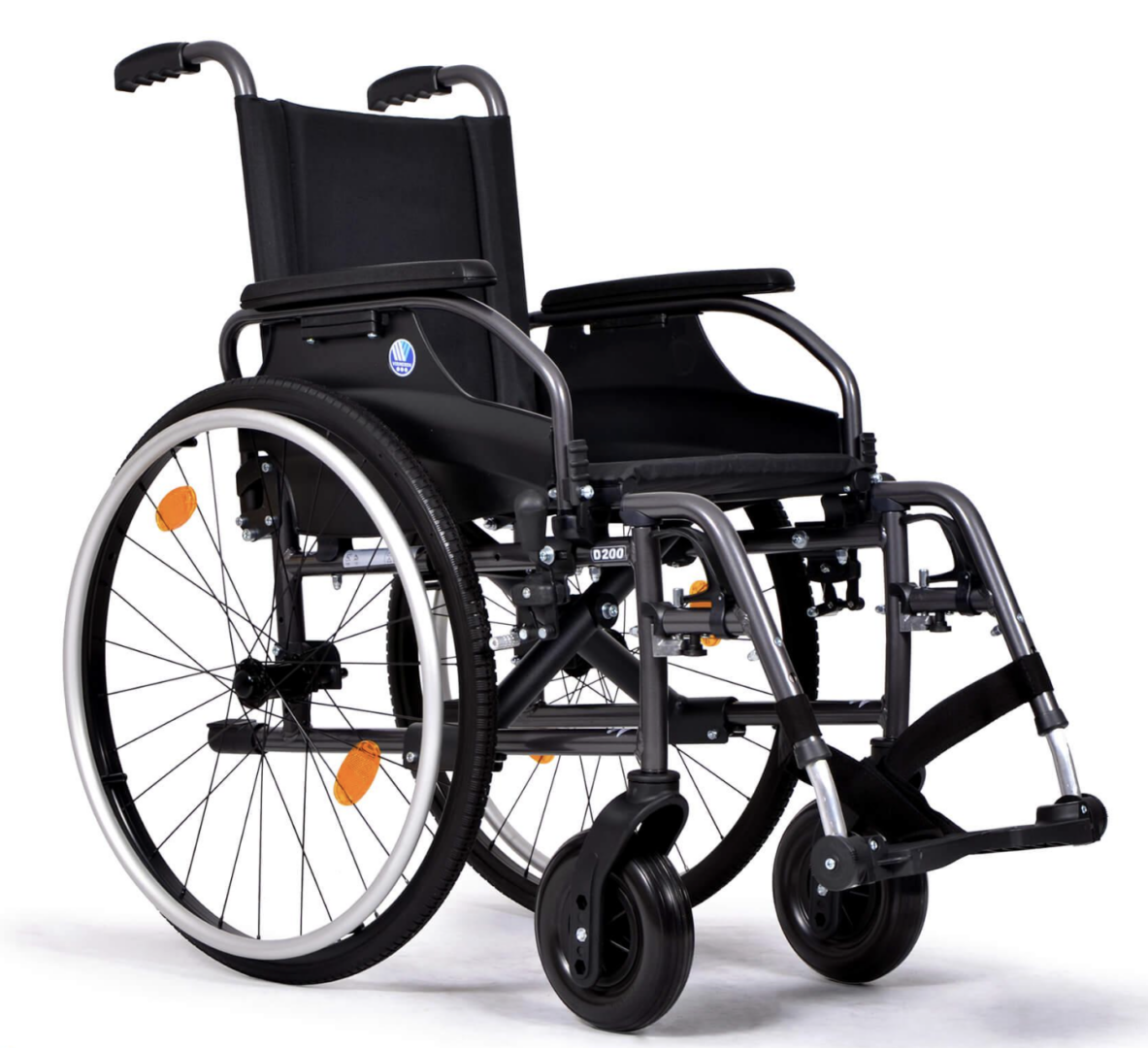 Wózek inwalidzki D200 firmy Vermeiren to lekki, aluminiowy wózek zaprojektowany z myślą o maksymalnej wytrzymałości, komforcie użytkownika oraz szerokich możliwościach indywidualnej regulacji parametrów. Dzięki składanej konstrukcji krzyżakowej po złożeniu zajmuje minimalną ilość miejsca, co ułatwia transport, np. na tylnym siedzeniu samochodu.
