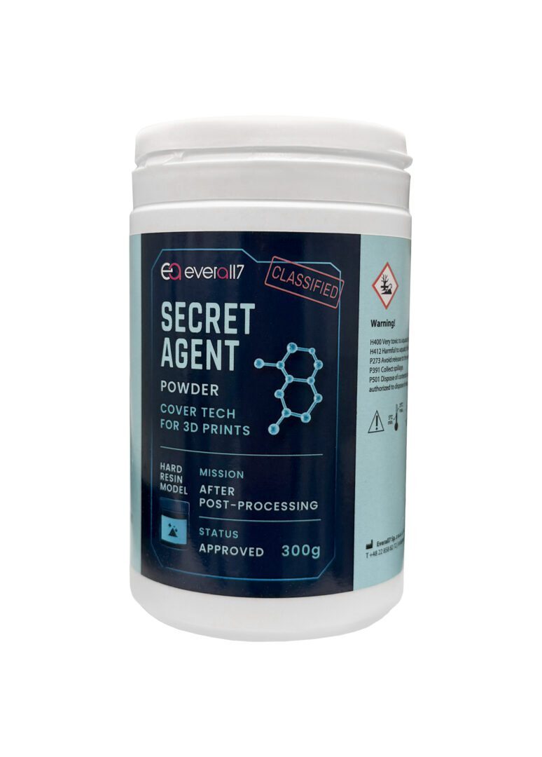 Secret Agent Powder pojawia się dokładnie tam, gdzie zaczynają się problemy dobrze znane każdemu, kto pracuje z wydrukami z żywic 3D. Gdy model okazuje się zbyt miękki, podatny na uszkodzenia lub gdy na jego powierzchni pozostaje cienka, lepka warstwa niedoutwardzonej żywicy – preparat przejmuje kontrolę nad sytuacją.