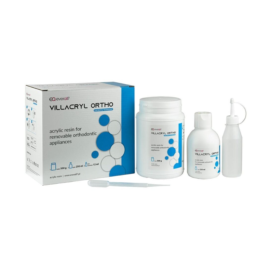 Villacryl Ortho to bezbarwne tworzywo akrylowe chłodnej polimeryzacji ciśnieniowej przeznaczone do wykonywania ruchomych aparatów ortodontycznych metodą nasypywania proszku na model i nasączania monomerem oraz napraw aparatów ortodontycznych.