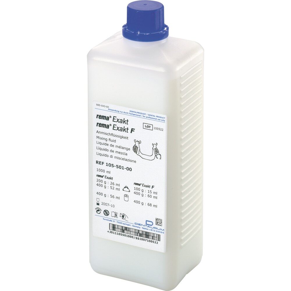 Rozrabianie płynu Rema Exact wodą destylowaną umożliwia redukcję ekspansji masy;